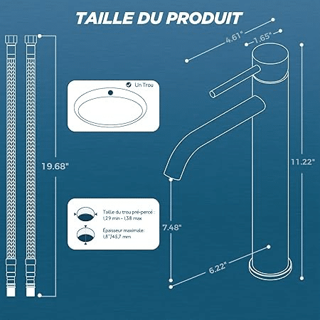 Fabriqué avec des matériaux de haute qualité et une finition soignée, ce robinet résiste à l’usure quotidienne tout en apportant une touche moderne et élégante à votre salle de bain.