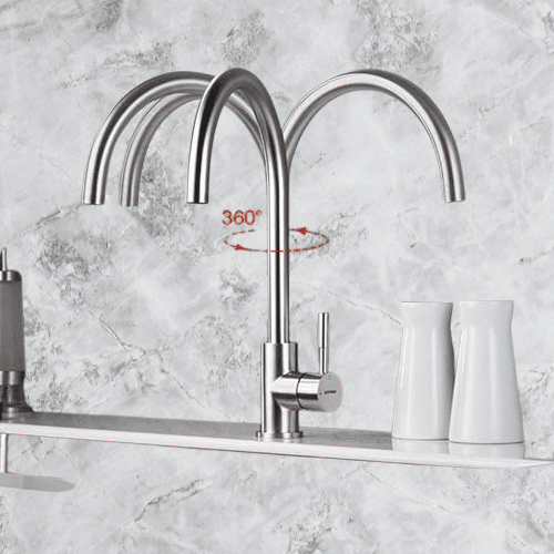 Sa rotation à 360° vous offre une grande flexibilité d’utilisation, vous permettant de pivoter le robinet dans toutes les directions, que vous ayez un évier simple ou double. Ce pivotement garantit une couverture optimale de toute la surface de votre évier, simplifiant ainsi les tâches de nettoyage, de remplissage ou de rinçage. Cette fonctionnalité est particulièrement utile pour les cuisines modernes où l’espace est essentiel.